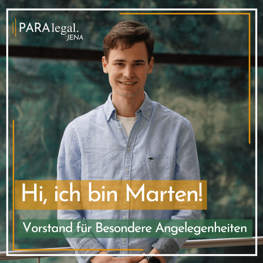 Marten Schott übernimmt als Vorstand für Besondere Angelegenheiten die Durchführung des Ausbildungsprogramms und hat zusätzlich die Aufgabe, Kontakt zu den Rechtsanwälten herzustellen und zu pflegen, mit denen wir bei der Fallbearbeitung kooperieren. Sein Ziel ist es, durch zahlreiche Veranstaltungen möglichst viele studentische Rechtsberater aus- und weiterzubilden. Außerdem ist Marten unser Beauftragter für den DSR.