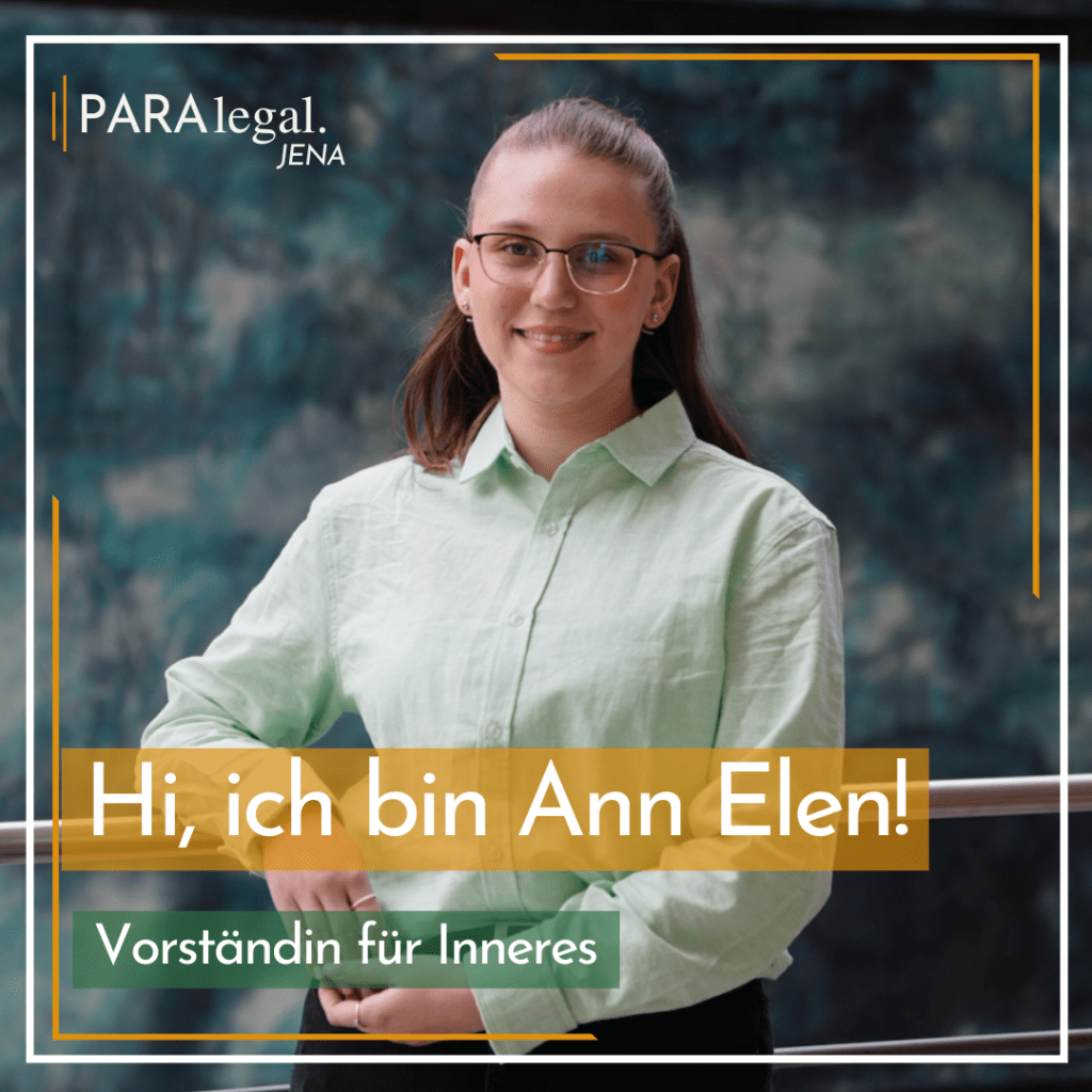 Ann Elen Steinbach ist Vorständin für Innere Angelegenheiten. Innerhalb dieser Tätigkeit pflegt sie die Mitgliederdaten im System und organisiere die Crashkurse am Ende der Semester. Außerhalb ihrer Tätigkeit im Verein und dem Studium geht sie tanzen, ins Fitnessstudio und begeistert sich für Poetry Slams und Literatur.